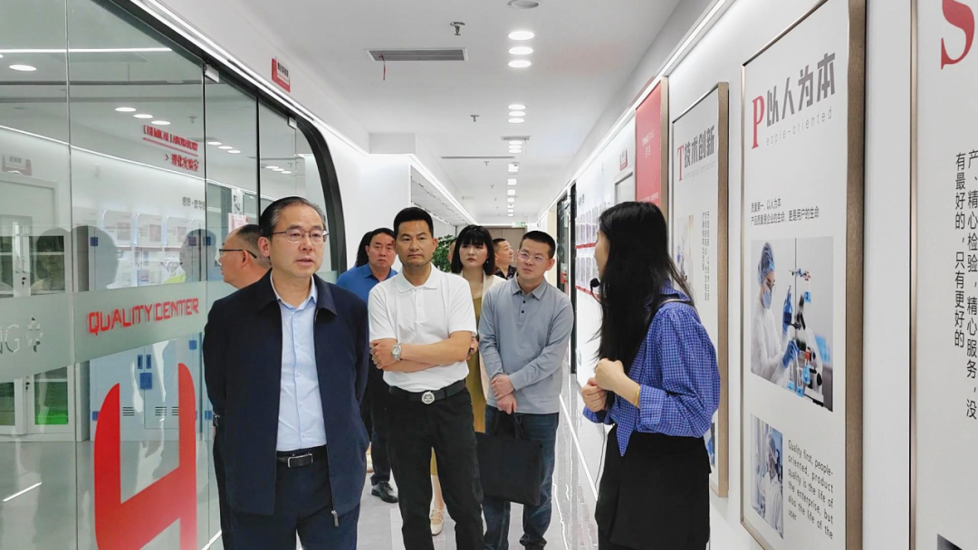 2025年4月8日,湖南食品药品职业学院校长虢剑波、副校长邓兴国、招生就业处处长李建新、经管学院院长刘喜红一行莅临银华棠医疗器械产业园开展产学研合作交流活动。虢剑波校长等一行依次参观了展厅、研发中心、实验室及生产车间,详细了解了银华棠的发展历程、生产流程以及技术创新成果。对银华棠在医疗器械领域的生产与研发实力表示高度赞赏,对银华棠未来的发展前景充满信心。